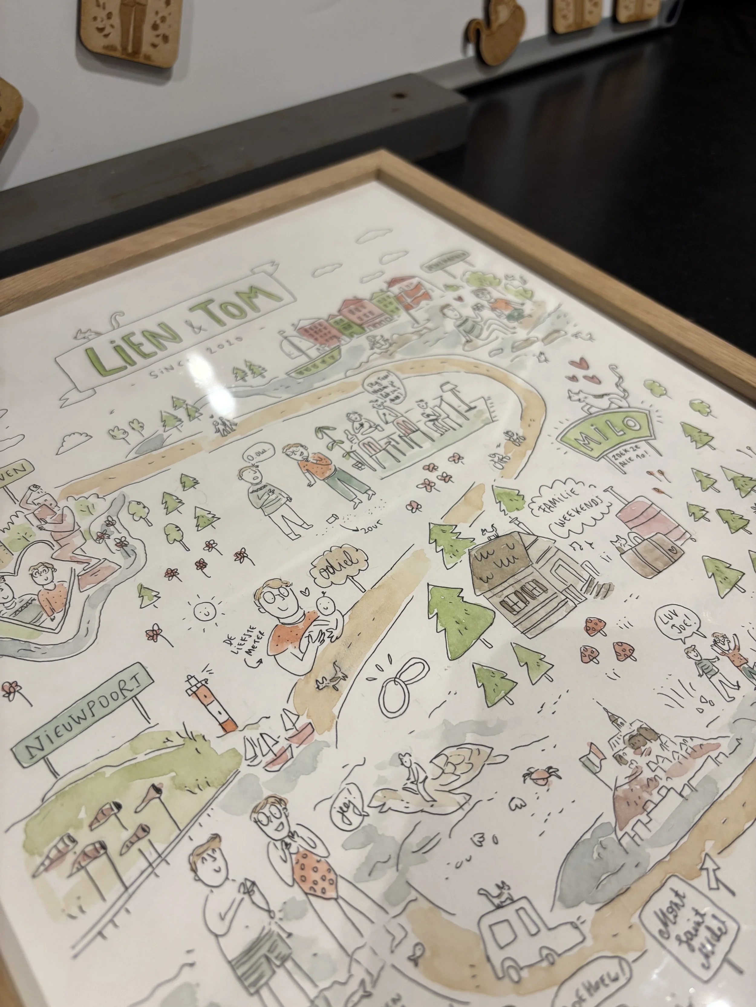 Anything goes on the love map: first dates, unforgettable trips, favorite spots, traditions, hobbies… The more I know, the more personal the illustration will be. Check out the questionnaire at the bottom of the page if you’d like some inspiration.